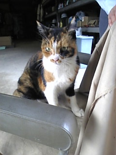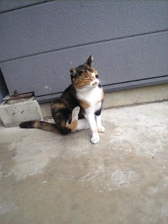 朝、会社に行ったら、いました。だいぶ大きくなったでしょ?あの三毛猫のチビちゃんです。
