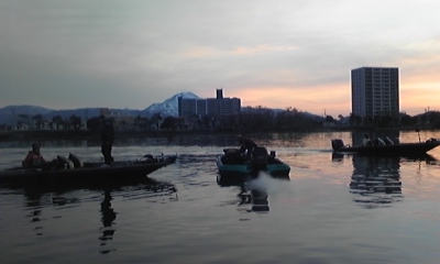 今日は久々に平日に『K先生』と襲撃! さすがに平日とあって長浜スロープは他に『タク石黒』艇のみ! これは楽勝と思いきや全くノーバイト地獄…。 スロープに帰ると『タク石黒』艇は大爆釣!さすがプロガイド!で写真撮影シーンをパチリ! 今からヤケ酒飲みますわ…(泣)