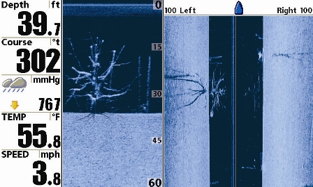 ダウン/サイドイメージの2画面です この組み合わせなら怪しいストラクチャーを探しつつ真下に沈むモノが何かというのがわかりやすいです右画面と左画面の比率も自分の好みで調整できるので便利ですよ これでローランスのストラクチャースキャンに対抗できる
