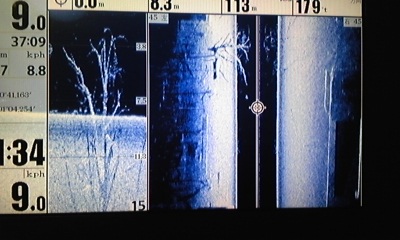 これまた湖東に沈むストラクチャーで先日紹介した夢のコラボこと中空ブロックプラス沈船です! 今回は真上からサイドイメージプラスダウンイメージで撮影してみました。 周りに色々なモノが沈んでいるのが良く分かります!
