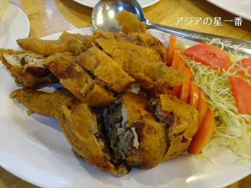 揚げ物です。中に肉類がぎっしり詰まっていました。