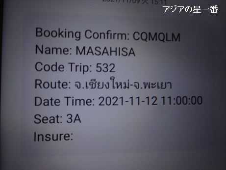 明日、所用があってパヤオに行きます。グリーンバスの乗車券ですが、