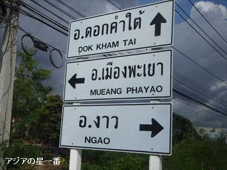 ここを左に曲がるとパヤオです。ここから10分位でしょうか?