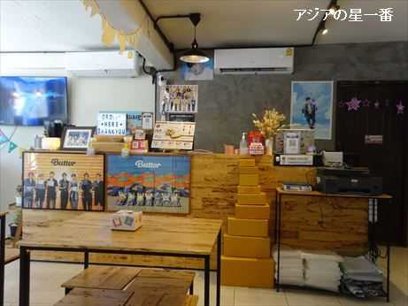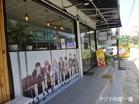 これがお店です。韓国のグループかなー? 店の前にポスターが