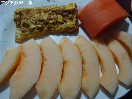 ふわふわ卵はいつも作ります。それからメロン、とパパイヤです。