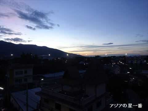 何時頃でしょう? ベランダからの眺めですが、薄暗くなっています。