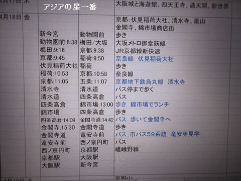 京都観光のスケジュールを検討しました。バスや地下鉄を調べて