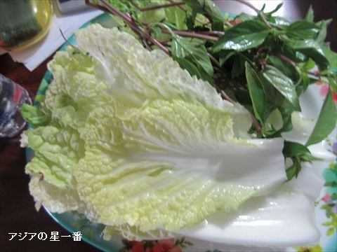 白菜も沢山付いて来ます。これもバリバリ食べながら飲みます。