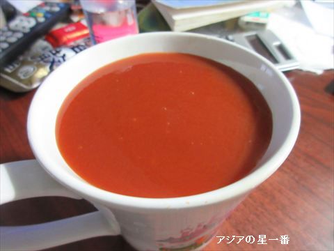朝食のトマトジュースです。