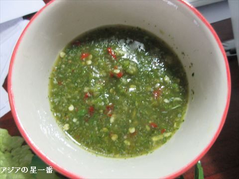 このタレに漬けて食べますが、辛いです。ひぃーひぃー言いながら