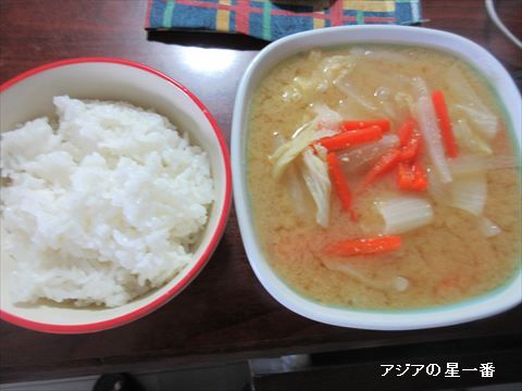 昼食は久しぶりにご飯を炊いて、味噌汁を作りました。