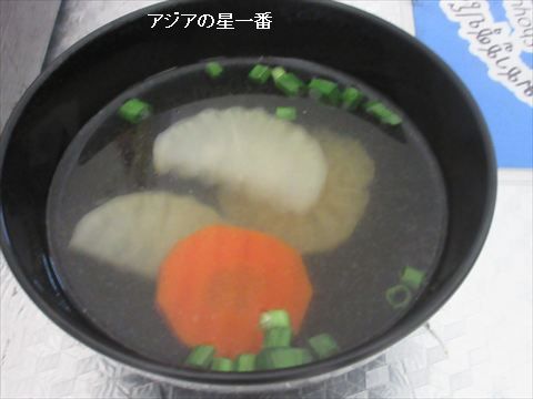 大根スープも付いて、たった60バーツ=270円です。銀うどんの