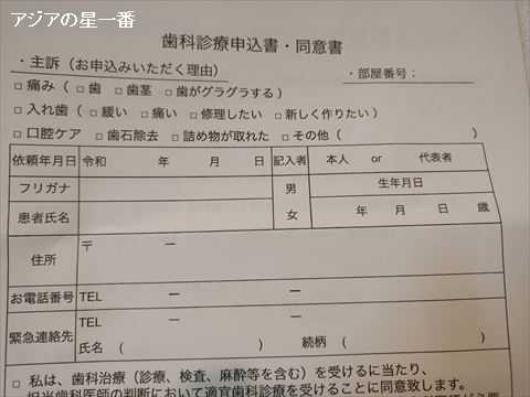 歯科診察申込書を書きました。ブリッジの前歯、もう限界かも知れません。