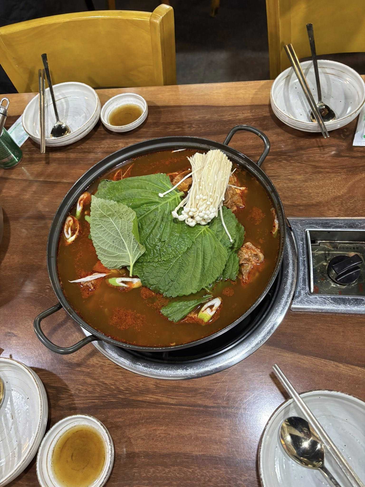 あ ! 信濃会 ですがカンジャタンがメーンの 店 でなべを 囲 みビール 焼酎 で 乾杯 です !