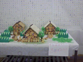 11/3.4と次女の文化祭でした。園芸・食品の公立高校なので、栽培した、お花や野菜、手づくりの味噌、ジャム、クッキーなど、の販売。模擬店(っていうのかな?)もたくさんありました。私が言ったには、お昼ちょっと前、お味噌やジャムは、人気があるので、完売してました。では、お野菜・・・・とおもったのですが、こちらもすでになく・・・・・ありゃりゃ(^_^;)今年は、次女のクラスの展示を見て、クイズに答え、アゲパンをいただき、他クラスも覗き、こちらもクイズ正解で、クッキーをGET(笑)子ども達も考えてますよ!ただ、物を配っただけでは、せっかく、レポートを書いても展示物を見てもらえないということで・・・・各クラス、クイズやスタンプラリー形式で、自分たちの手づくり品を渡していました。写真は、3年生の展示ですが、「クッキーについて」の作品です。。 「7匹のこやぎ」 「3匹のこぶた」 「お菓子の家」