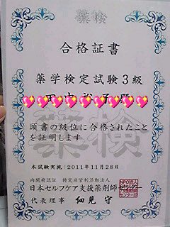 合格通知は、貰っていたけど、証書がくると、やっぱり…嬉しい☆(-^▽^-)☆