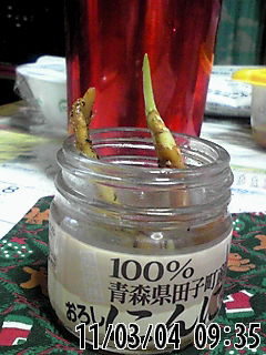 ある程度芽吹いたら、植え替えるようですが、団地は、庭がないので、ダメもとで、小さなプランターに詰めました(爆)