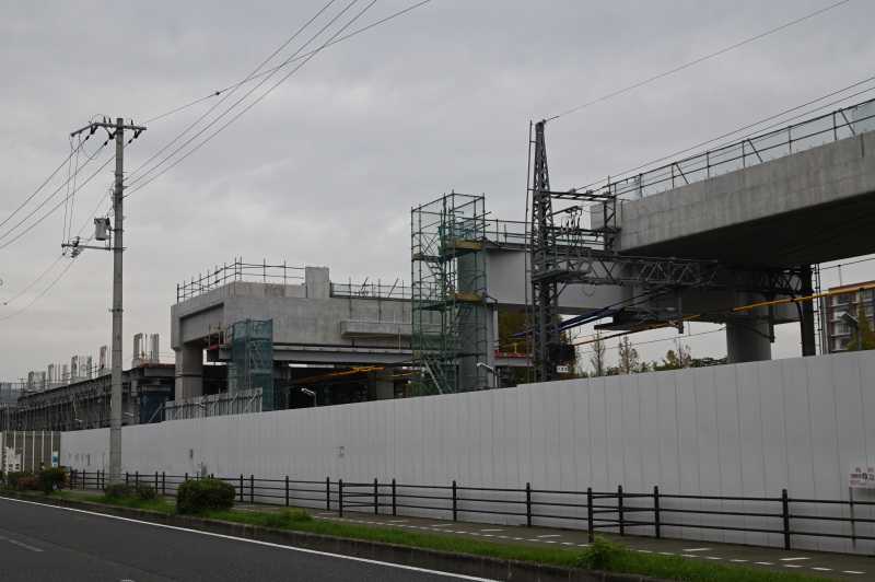 こんにちは。こんばんは。 下新庄駅の9月の様子をレポートします。 1枚目は五田名北踏切から見た下新庄駅です。 ステージ上に足場が組まれています。工事が本格化してくるようです。 2枚目は北千里行ホームから旧淡路行ホーム梅田側です。 旧ホーム自体は大きな変化はありません。現行の線路の境界にフェンスが立てられました。 ここからも線路上のステージに足場が組まれているのがわかります。 3枚目は北千里行ホームから見た旧淡路行ホーム北千里側です。 線路の境界に立てられたフェンスは旧ホーム全体に及んでいます。 こちらも作業が本格化するようです。 4枚目は下新庄踏切の淡路側です。 橋脚の柱工事が進んでいます。現在は柱間の鉄筋工事をしているようです。 5枚目は下新庄踏切北の道路部分北千里側です。 高欄ができあがりました。このあたりはしばらく動きはなさそうです。 今月は以上です。来月も引き続きレポートします。