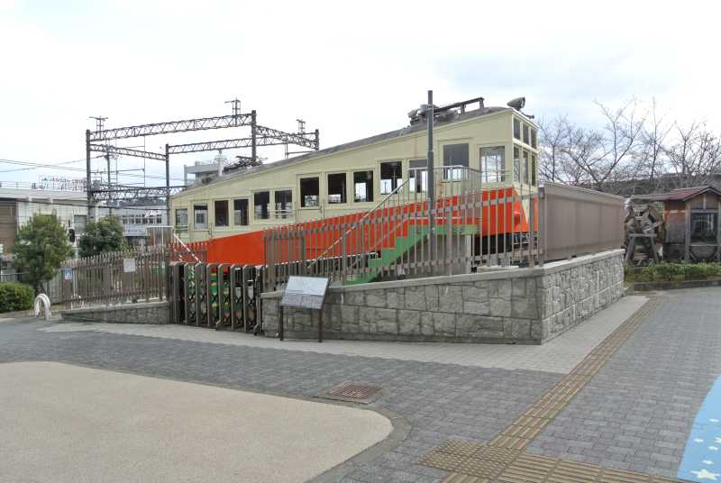 これが今の信貴山下駅です。右奥にタイトルの保存車両が見えます。