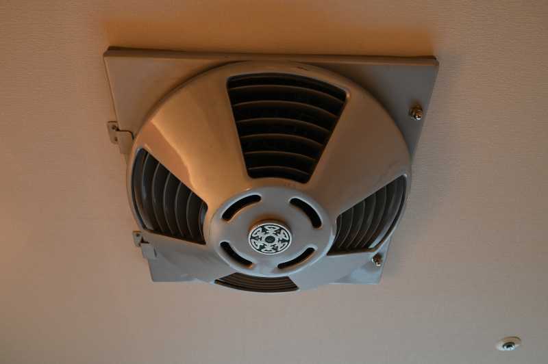 部屋の天井には社章入りの回転グリルも展示されています。