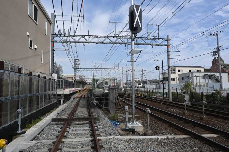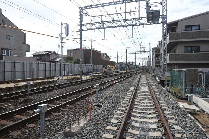 3枚目は同じく石津川8踏切から見た難波方面行の新ホームです。