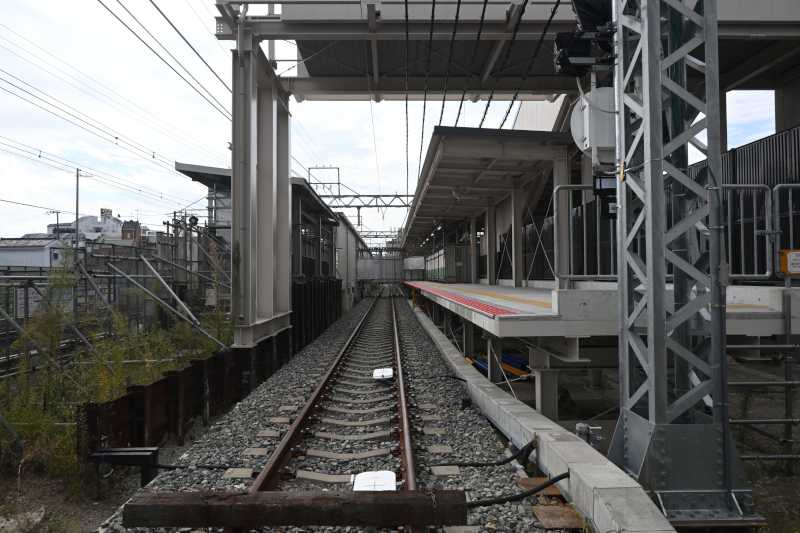 以前紹介した阪神なんば線福駅のように新ホームから現ホームに渡っています。