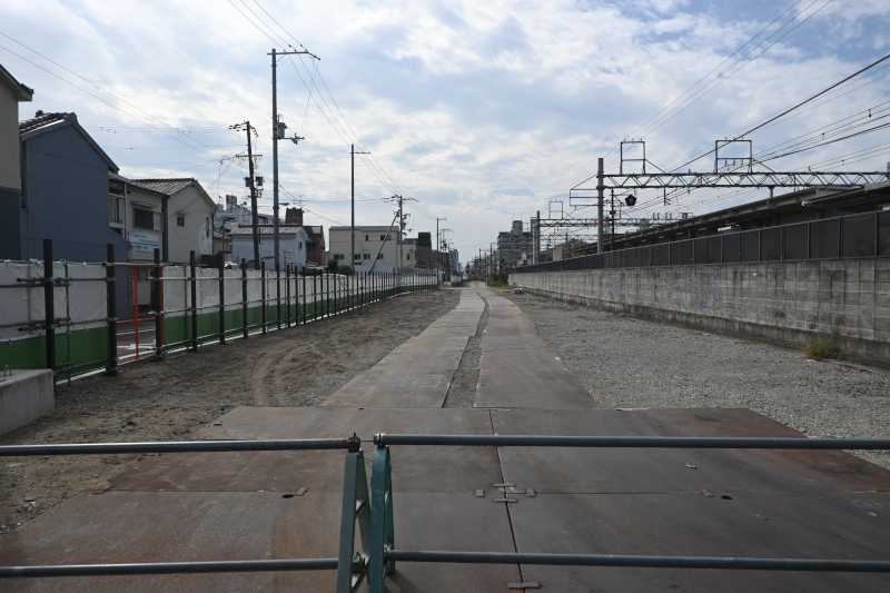 見ての通り隣の諏訪ノ森1踏切付近まで鉄板だけ敷かれています。