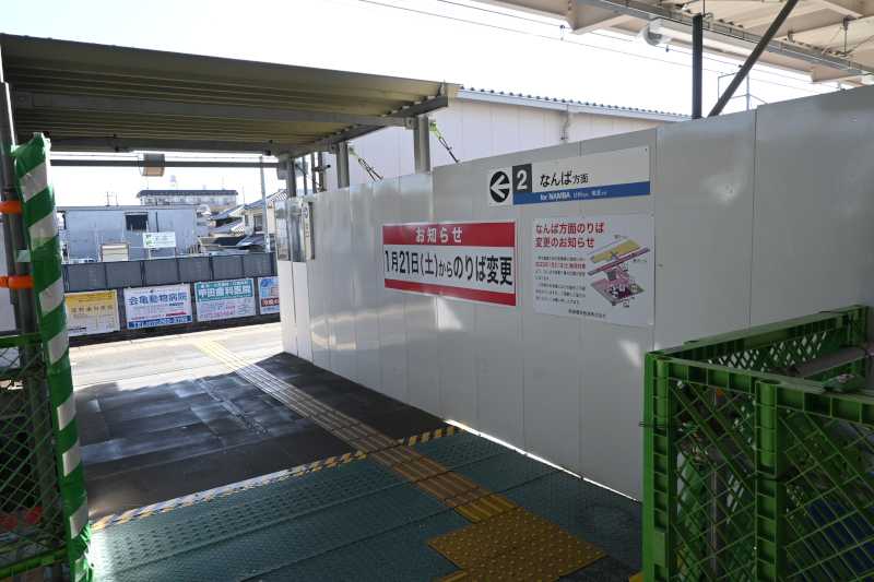 今回は諏訪ノ森駅仮線切替に伴い廃止される上り難波方面行のホーム特集です。