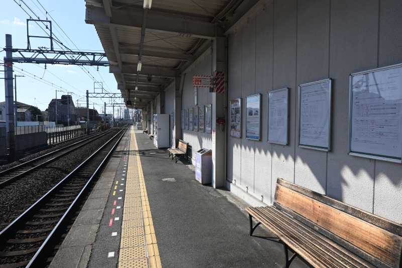 1枚目は難波側から見たホームです。手前に見える階段は旧駅舎につながっていた階段です。