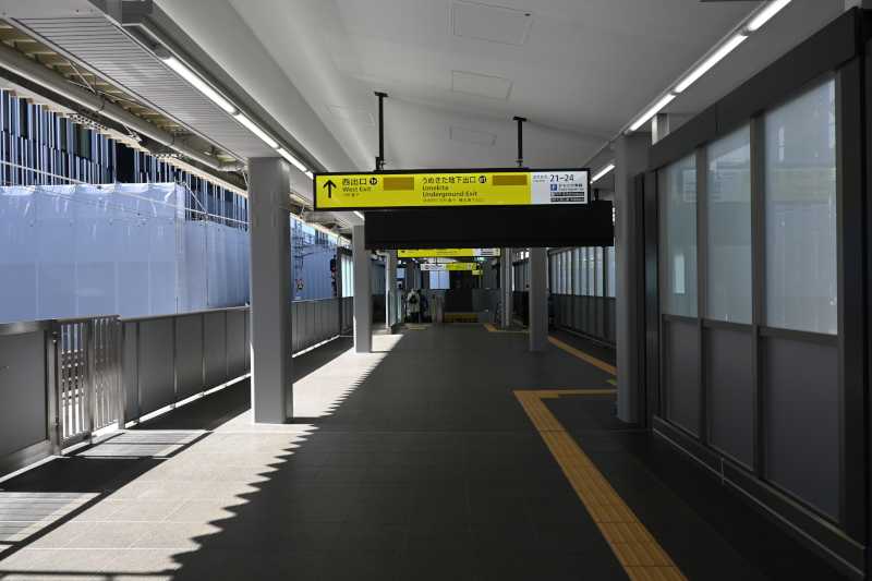 周辺はまだまだ工事中なので通路脇もフェンスで囲われています。