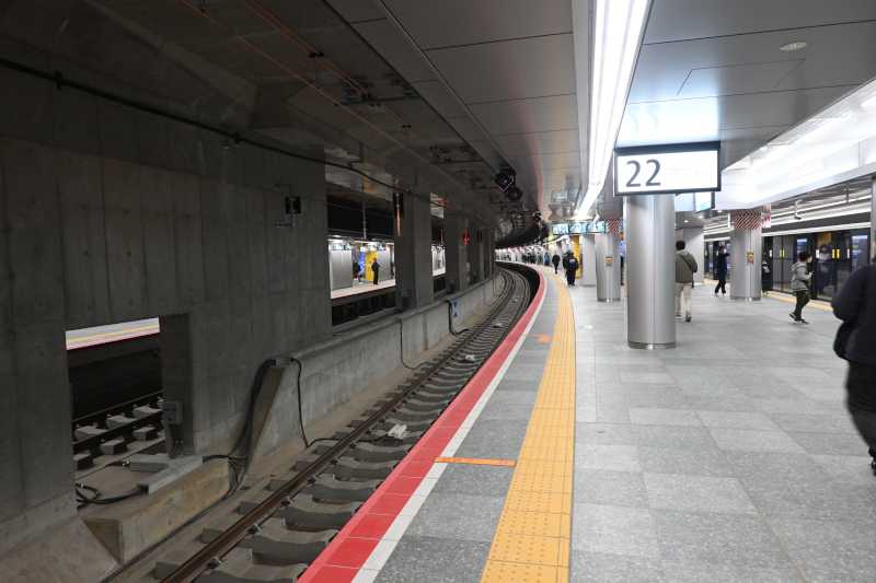 2枚目は地下ホームの様子です。21番線と22番線です。左に見えるのが23番線です。