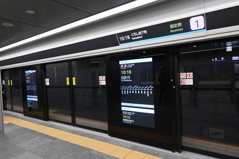 上の「くろしお7号」と書かれている部分もディスプレイで乗車位置を示しています。