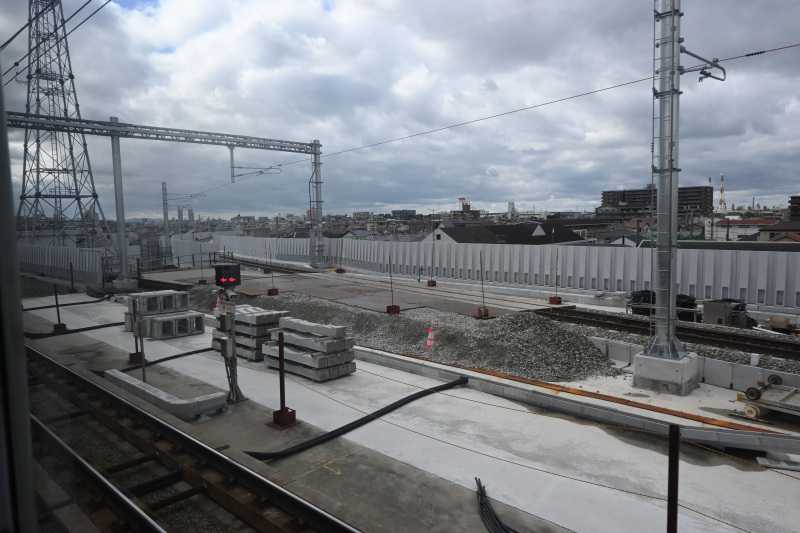 ホームの屋根が概ねできたようです。階段部はまだ工事中のようです。