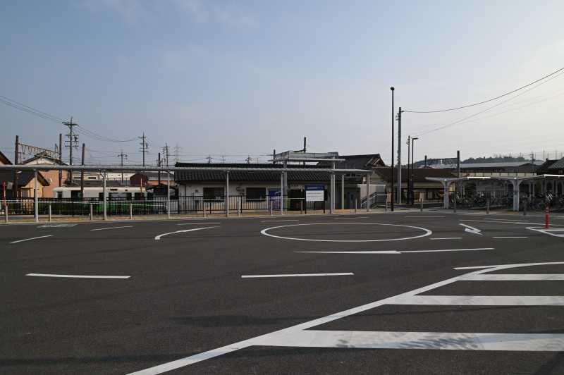 内部駅と同様車が乗り入れできるようになっています。駅舎の左側に自転車置き場もあります。