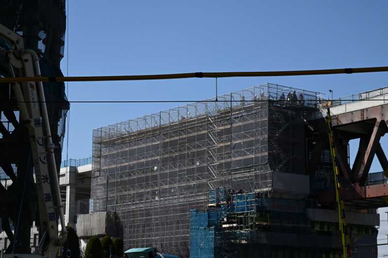 トラス上の設備は撤去されました。設備の足場は引き続き残っています。