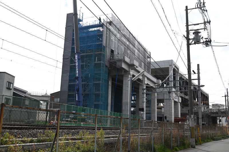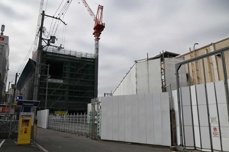 右側変電所の壁の外側にフェンスが立てられました。壁の解体をするようです。