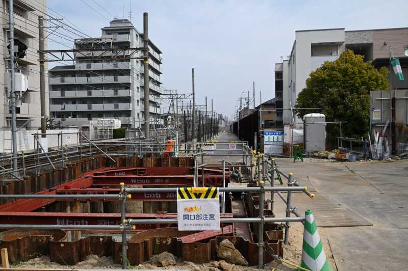 この先の難波側には橋脚の鉄筋がずらっと見えています。