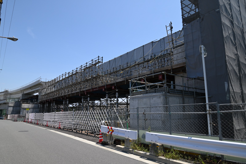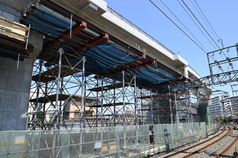 7月中は夜間通行止めにして桁上部の工事を行っています。