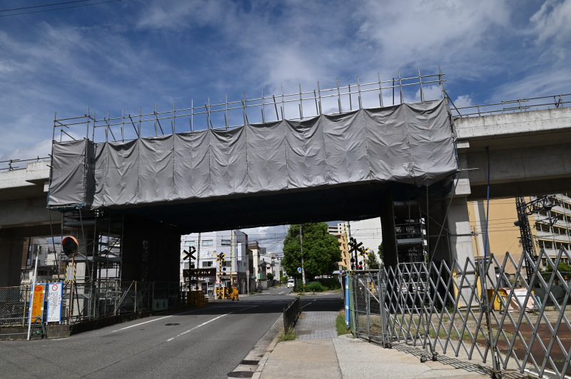 高架橋上部の工事が落ち着いたようでフェンスの解体を進めています。