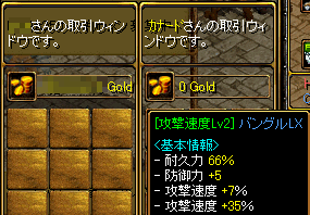 分身がたまに赤くなったり青くなるのは仕様ですよね。カナドです。久しぶりに箱品のSSが溜まってきたので少し載せてみます。二週間分くらいです(ぁ俗に言うあれですね、箱金靴!7Mくらいで売れたのに今は4Mでも売れません(つД`)エーン吸収二つでましたけど・・・このゴミっぷりですので鍛冶屋売り。これは需要ある・・・?安そうだけど(*´ω`)おまけインベントリ満だった。
