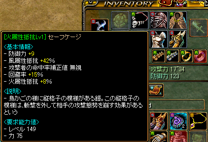 セーフ買っちゃいました。前々から欲しいと思っていたんですがやっぱり金がないので後回しにしてましたが探索で大きいお金が入ったので買っちゃいました。130MですΩ\ζ゚)チーン残金?4Mですお( ^ω^)とりあえずアンティと組み合わせて神殿B3PTで釣りしてみました。すいません、攻撃喰らいます。やっぱこれは俺みたいな微運シーフには使えない品なのか!と思いつつ敵が増えてきたので分身を使ってみるとうはwwwwww俺回避sugeeeeee分身も一緒に使うと回避がかなりあがった気がしました。まぁ俺は分身2体だからすぐに分身消えてダメ喰らいまくりんぐ^^^^今日はここまで。