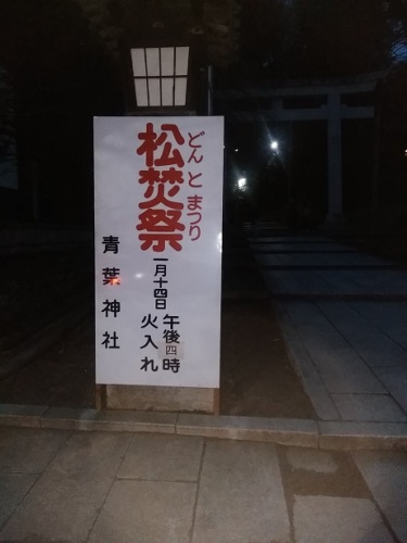 きょうは、仙台では神社でお正月飾りを焚き上げ、御神火にあたることで一年の無病息災・家内安全を祈願する祭である「どんと祭」が各地の神社で開催されました。県内で一番の人出になり、テレビのニュースでも取り上げている大崎八幡神社もそれほど遠くはないのですが、交通規制になっているし、徒歩で行くには少し頑張らないといけないし、すごい人出で並んでいる時間が長くなりそうなので、例年通り徒歩20分で行ける青葉神社にウォーキングがてら行くことにしました。徒歩20分プラス神社の階段100段の往復でも歩数計は5000歩程度でしたが 火入れの時間の間もなく行ったので、まだあまり大きくありませんでしたが、お正月飾りを投げ入れ、火にあたって、参拝をして帰ってきました。実は昨日一人暮らしの87歳になった母から、茨城の友人から苺が届いたから取りに来いという電話があり、それだけではなく、最近膝が痛くて神社までお正月飾りを持って歩いていく自信がないと・・・。それで、苺も早くもらって来ないと悪くなるし、実家に行って実家のお正月飾りも持ち帰ってきて、一緒に神社に持って行ったのでした。 こっちも見てね「いけばな日記」にほんブログ村 いつもありがとうございます。今日もポチッとお願いします