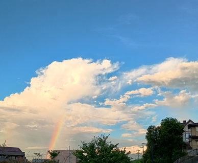 仙台七夕の前夜、夕方には虹がかかっていましたきっともっと長かったのかもしれませんが、私が見た時にはもう少ししか残っていなくて間もなく消えてしまいました。 そして夜は、仙台七夕花火祭りが開催されました。我が家のバルコニーからは方角的にはほぼ真正面に見えるのですが、途中に北山がありそれより高く上がった分だけ上半分だけ見えます こっちも見てね「いけばな日記」にほんブログ村 いつもありがとうございます。今日もポチッとお願いします
