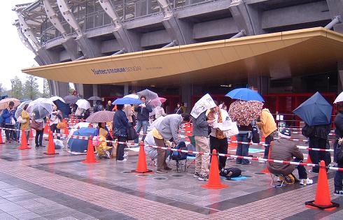 これは9時半ごろ、開門1時間前の北側ゲート付近です。雨が降っていたせいもあり、いつもより少なめです。正面も少なめでした。