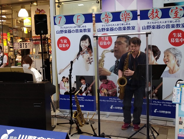 帰りにアーケードの店頭で、音楽教室の宣伝だと思いますが、講師によるミニコンサート