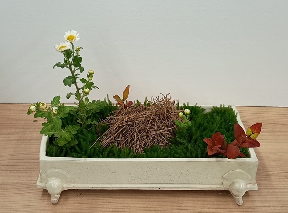 4時間目【写景盛花】秋の写景を学ぶ 敷松葉の様式~敷松葉の自然本位 頂いた花材は紅…