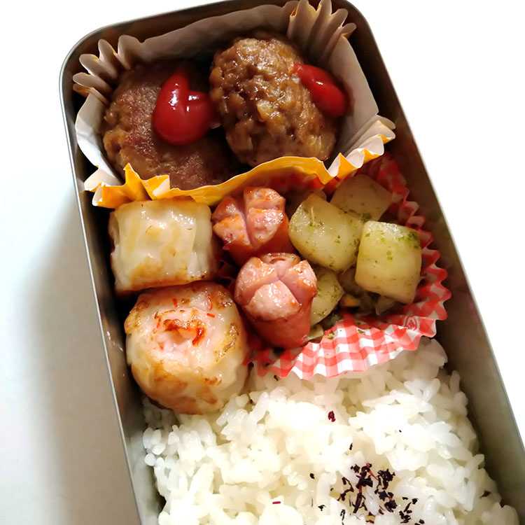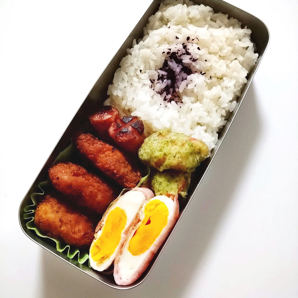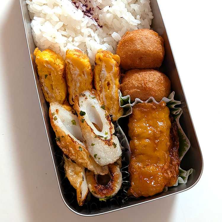 お弁当の量が多いと言われました..ご飯の量を減らしたのですがまだ多いと...おかずギュウギュウに詰めたいのにな..ご飯をミニおにぎりにして4つ入れたら3つでいいとのことおかずのスペースが増えるやんスカスカでもいいと言われても詰める方としては落ち着かない...とりあえず高さを低くして調整してみた。こんな感じレイアウト悪くはないかな..ちくわに続き焼き蒲鉾も入れがちです。これでも多いんだろうけどこれ以上減らすならお弁当箱買いなおすしかないかな。残すのは申し訳ないと思ってるから言ってるのだろうけど注文が多いですホント..使用しているお弁当箱はこちらですサーモス フレッシュランチボックスDSD-704 L-BK(送料無料)