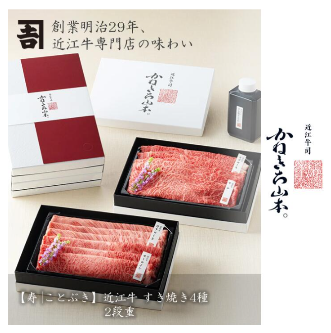 カネ吉山本は明治二十九年に近江八幡にて創業して以来、お陰様で百二十年以上の長き間ご愛顧いただき、豊かな自然の元で育まれた近江牛の伝統と品格を守り続けて参りました。「おいしかった」の声を聞かせていただけることを一番の喜びとして、今後も一層努力して参ります。