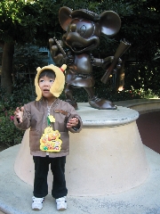 今日は旦那様に有給をとってもらい、毎年とんプーくん誕生日恒例(と言ってもまだ2歳だから2回目(^_^;))のディズニーリゾートで記念日を実行してきました☆昨年も誕生日の1月、寒ーいときに行ったのですがデメリットは寒い!海沿いだから風が吹くと寒い・・・メリットはちょうどちびっ子たちは学校が始まり、イベントもないし空いていること。うちはまだ2歳なので乗れる乗り物も限られるしショーや散歩がメインなので並ぶということは皆無なのですが・・・それでも空いているほうが気持ちいいですよね!ということで、毎年強行しています(*^_^*)しかも夜は7時までしかあいていないので、夕方から来る人なども少なく午後になったら増える~なんてこともなさそうです。昨年はディズニーランドだったので、今年はシーへ行こうと言うことになり開園10時に合わせて家を出発!ナビを頼りに行ったけどいつも通る道でした。渋滞もしょうがないとあきらめつつ、行き着いたのは9時45分☆いい時間です!しかも立体駐車場もがらがら。1階の出口目の前の位置に止められました。とんプー君を着替えさせて、いざ出発。パパが一服したいと言うので、駐車場横の休憩スペース(喫煙場所)で休憩。その間に撮った写真。ミッキーの像が置いてあり、とんプーくん興奮!!そして偶然に撮れたのがこれ。ミッキーとそっくりのポーズで写っていました☆そしてキャストの方にバースディシールをもらい、5分後に開園☆中に入ると入り口にたくさんのキャラクターがいて、ミッキーとももみあいですが撮る事ができました(*^_^*)でも目線は違う写真のほうだけどね(笑)ちなみにほかのキャラクターはほとんど人もいなくて、すぐに撮る事ができるくらいの人数。ディズニーランドより人が少ない!と感じました。そしてがらがらのエントランスをとんプー君歩かせながら抜けると目の前に大きな山と海☆今日は風もないし、気温も平年並みということで暖かい!!!なので外にいても寒いと思うことはない絶好の天候でした♪今日の目的はこんな感じ。・とんプー君も乗れる乗り物に乗る。(ほとんどがマーメイドラグーン)・記念写真を撮る(合成写真でOK)・その記念写真のものでポストカードを作ってとんプー君宛てに送る・たくさんのデジカメ写真を撮る☆まずは乗れる乗り物を制覇して、午後はゆったりうろうろしてショーやパレードを見ようということになり、海底2万マイルへ。待ち時間0分。ファストパスもとる必要がなかったです。反応は、びっくりしていて暗いのでちょっとビクビクしてました(笑)でも最後宇宙人?にバイバイしてました(*^_^*)そして次はマーメイドラグーンへ。アリエルのショーをファストパス取ってから、中の乗り物を乗るといいながら行ったら「ショーは特に混んでいないのでファストパスを中止しています」だって。ちょうど始まったばかりだったので20分待ちでしたが、まわりの乗り物に乗って時間をつぶし(ちなみにほかの乗り物は誰も乗っていなくて動いているものばかり)あとはショーのスタンバイのために中で少し待つことにしました。そしてショーが始まりました。とんプーくんの反応は?!大興奮で、ずっと見入っていたよ☆途中で飽きるかな?と思ってぐずることを心配していたのですが、上や下に動くアリエルやたくさんの海の生き物たちに釘付けで、終始「あー!お魚!」と言ったりアリエルがバイバイすると夢中でバイバイしてました。2歳にもなるとこんなに真剣に見るのかしら??私はショーも見てましたがとんプーくんがリズムに合わせて踊ったり歌ったりしている姿を見ているほうが楽しかったです(*^_^*)そしてそのまま11時半だったので、マーメイドラグーン内の食事スポットで食事。外じゃないから暖かいし☆素敵な貝殻のソファーで食事です。シーフード系でしたが、ほたてチャウダーおいしい!!!!!とんプー君はホタテチャウダーとシュリンプチップを食べてミルクを飲み大満足!私はパスタサラダを食べました。おいしかった!!予定外にどんどん乗れてしまったので、あとは写真を先に撮ろうということになり、とんプー君が寝てしまう前に写真を撮りに行きました。場所はメディテリアンハーバー?の方なので、またもとのところまで戻りました。そしたらカメラマンがたくさんいたので山をバックに写真を撮ってもらい、自分のデジカメとあとは写真屋でほしければ購入するというタイプの写真を撮ってもらいました。もちろんあとで購入(1050円で見開き右側に自分たち、左にミッキーたちが同じアングルで写っている写真が付いてきます)それを今年の記念写真にしました。そして合成写真のほうでは葉書4枚+シール2枚のセットにしました。1575円なり。近くのお店で切手を購入して後に休憩したときに書いて出しました(*^_^*)合成写真のほうはせっかくなのでマーメイドラグーンのアリエルと海の中での写真にしました♪その後は予定通り散歩しながらうろうろ。とにかく人がいないのでとんプーくんも余