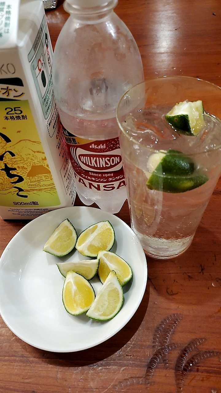 早積みミカンを尊敬する職場の上司から頂いた。麦焼酎炭酸割りに絞って👍️夏に合う爽やか~⤴️ありがとうございました🙇